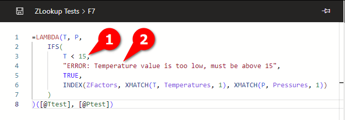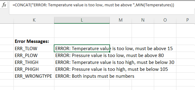 This means we can use the names in our functions, and are free to play with the wording of each error message without having to modify the function over again. As a bonus, we’ve also derived these error messages from the table ranges too, so even our error messages will automatically update if the lookup table changes.